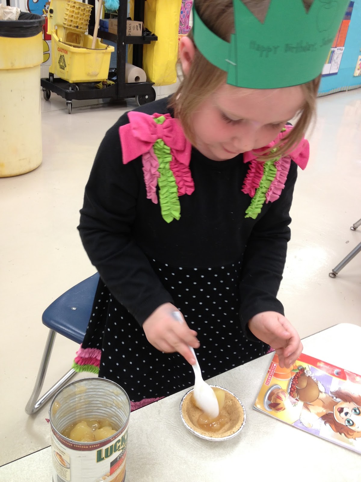 This afternoon at snack we celebrated Johnny Appleseed's birthday by making apple pies!